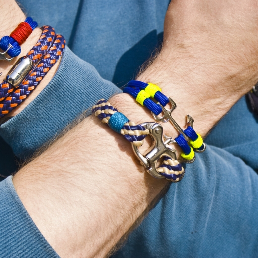 Das Unisex Armband Clipper* besteht aus weichem und sehr angenehm zu tragendem Breitband Schiffstauwerk welches von einem soliden Schnappschäkel geschlossen wird. Die handgetakelten Tau-Augen in schwarz & petrol geben dem Clipper sein marines Finish.