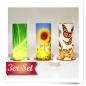 - 3 Coasters made of glass or stainless steel (make your choice above in the drop-down-menu)